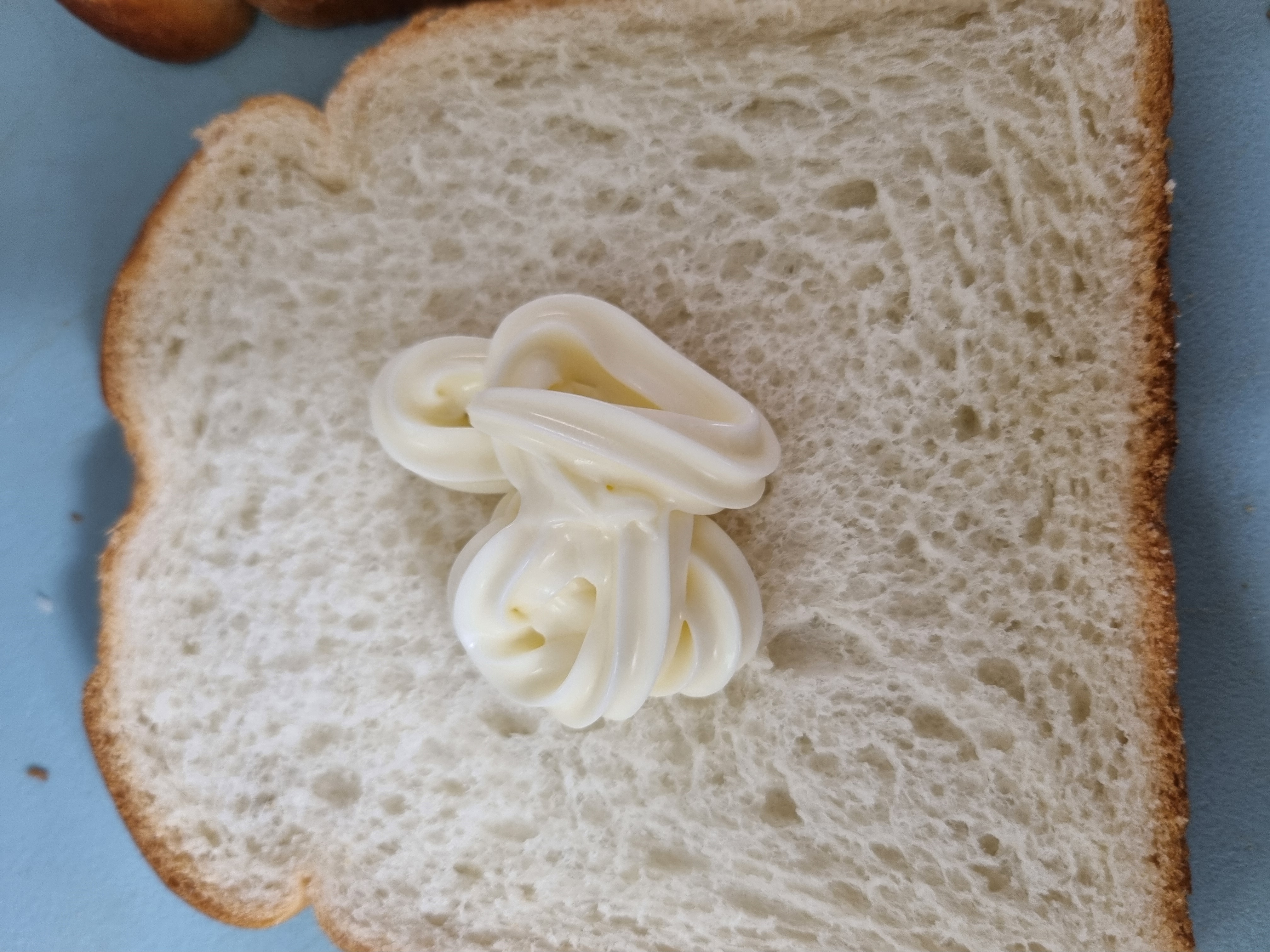 3. 다른 식빵에 머스타드를 펴 바르고 덮는다.