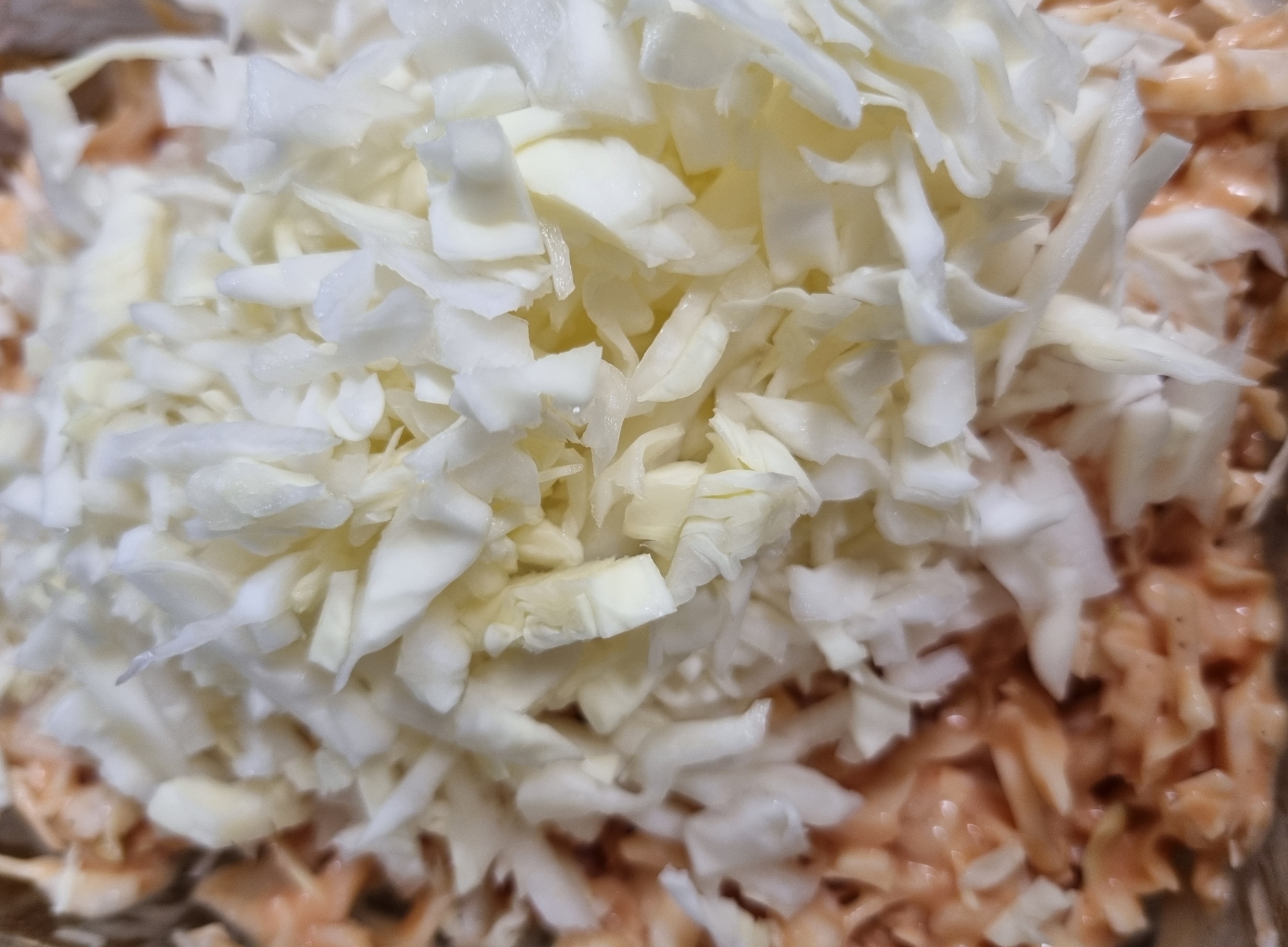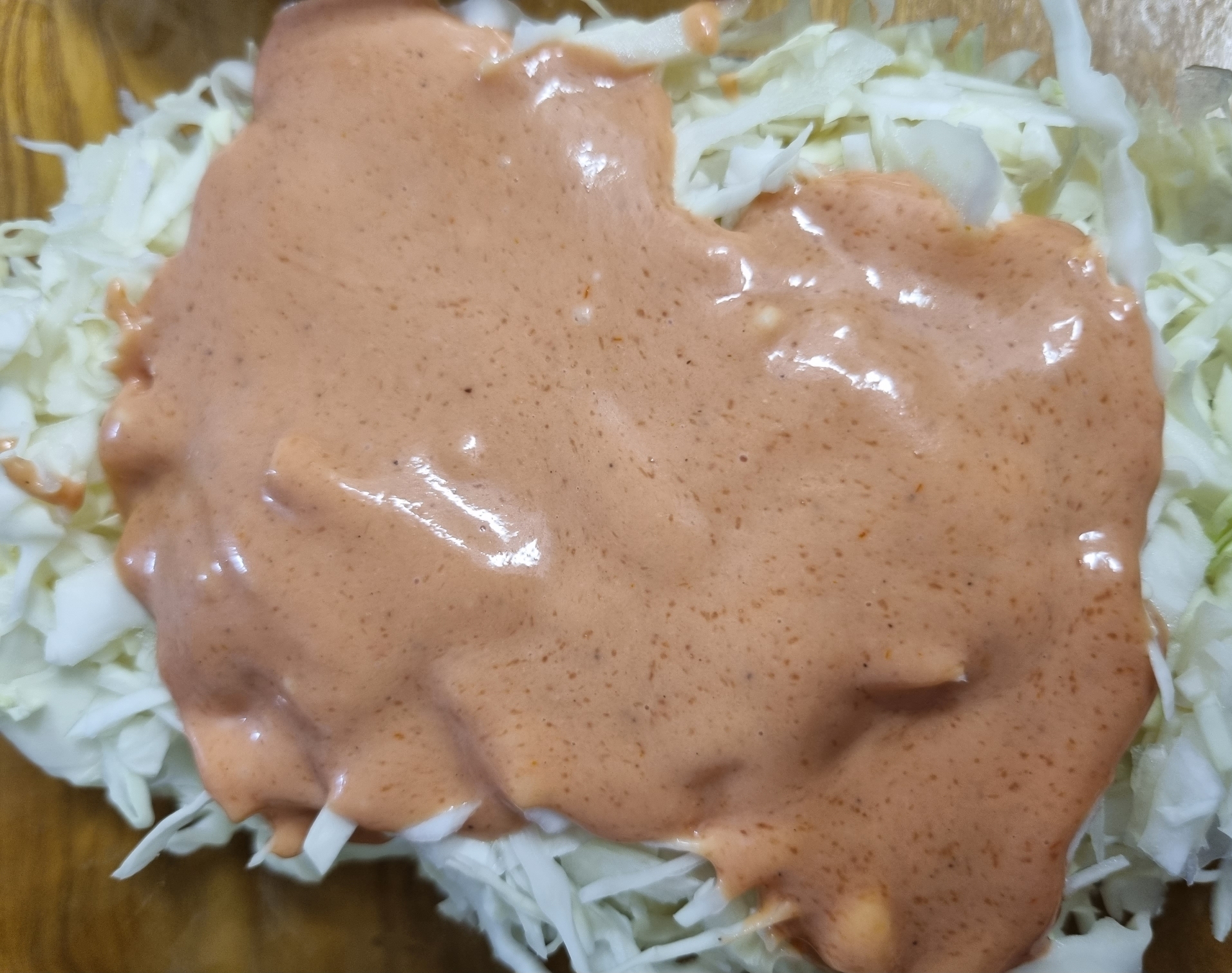 3. 양배추에 샐러드 소스를 붓고 잘 섞는다.