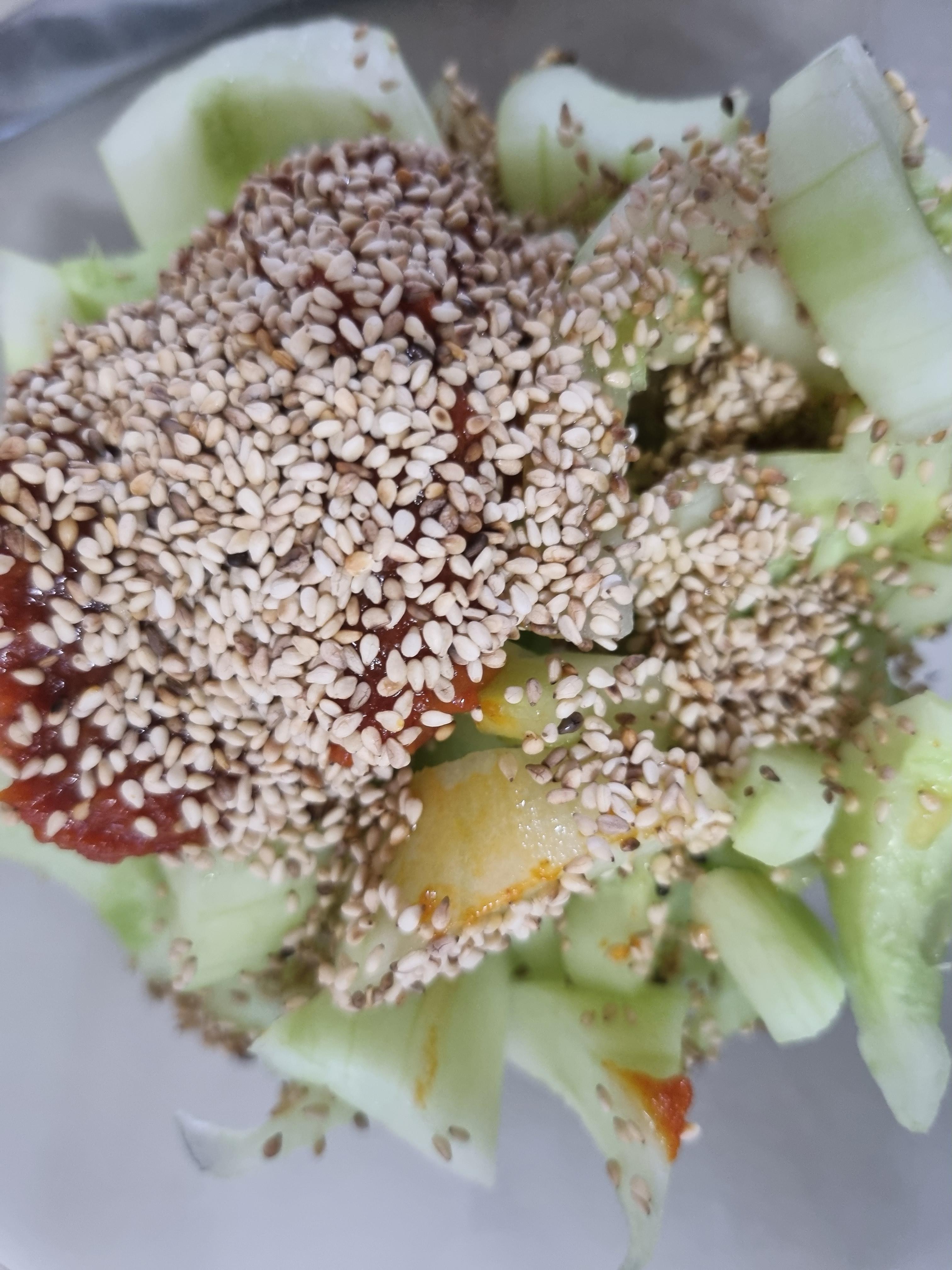 완성!! 너무 간편하고 맛있는 오이쌈장무침이다.