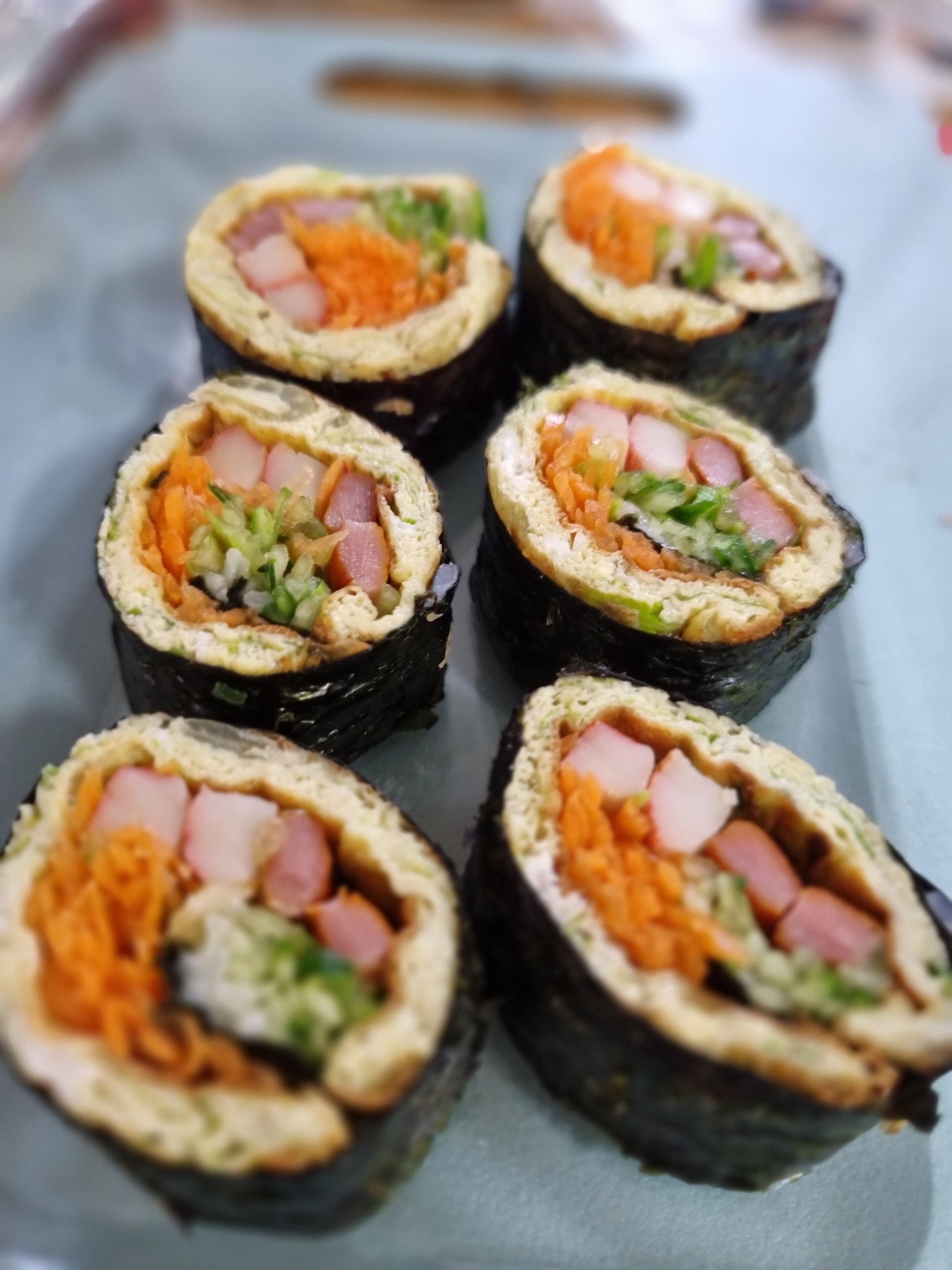 (내가 기술이 없어서인지 일반 김밥처럼 이쁘게 말리진 않았다.)